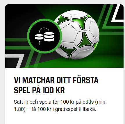 - Gratisspel: Matchar din första insats upp till 100 kr.
